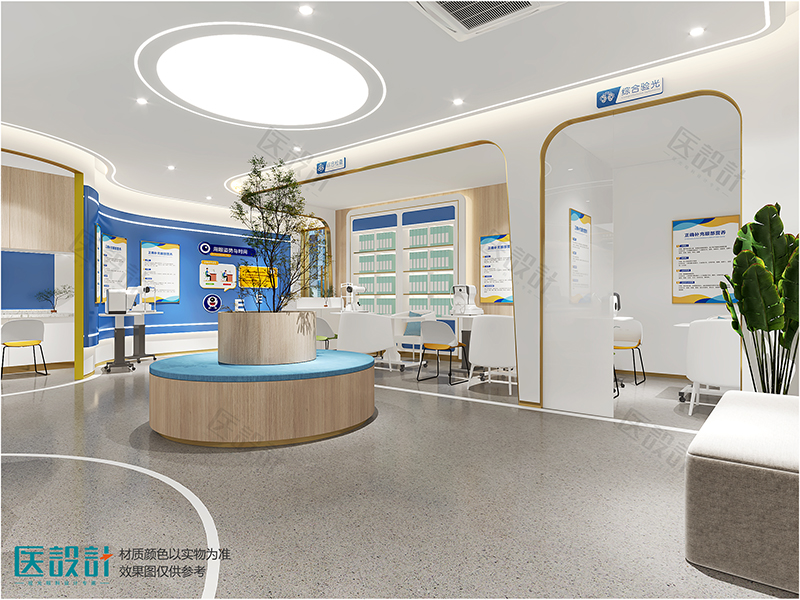 眼科门诊的服务项目决定了空间需要划分几个模块,综合验光区、康复训练区、角膜塑形区等要严格按照人流动线进行划分,合理的布局,给消费者带来舒适的体验。