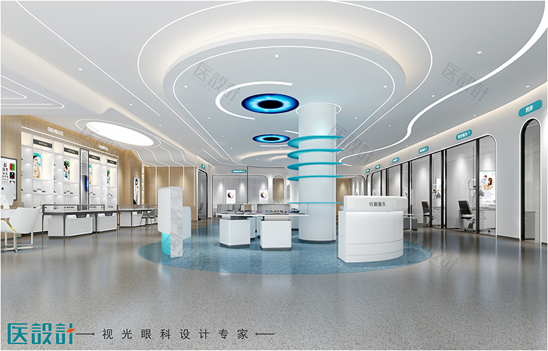 在视光眼科的空间装修上,要以消费者的感受为核心,选择既能满足大众审美需求,又不影响空间专业氛围的色彩搭配,打造出亮眼吸睛的空间,再按照专业功能区的需求和消费者的体验感,进行动线的设计和空间的布局,为消费者提供专业的服务和舒适的治疗环境,装出更能获取消费者信任的空间。