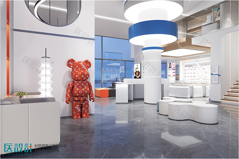 眼视光的空间也可以是多样化的,在空间布局保证专业性的基础上,大胆运用色彩营造出风格各异的眼视光空间,给消费者多样化的视觉体验,增强空间的时尚度,达到吸引消费者进店的目的。